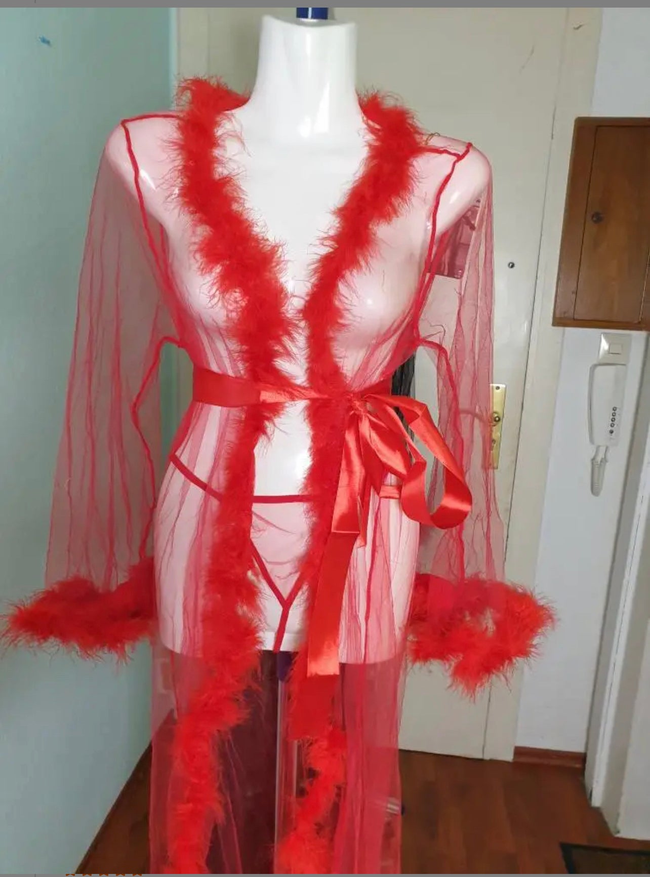 Turn up the heat with this luxury, lace, all red lingerie. Great as a cover up on those romantic nights. Wow your partner or just feel sexy in this one of a kind piece. Features a red ribbon to tie around your waste.
